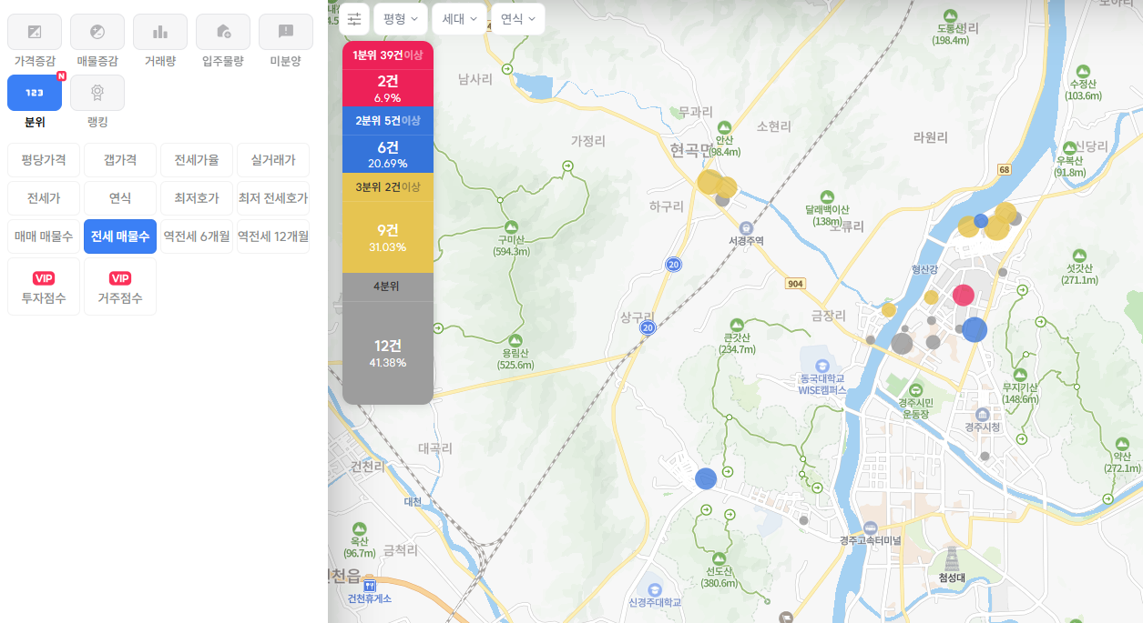 경주시의 전세 물량입니다. 매우 적은 것을 볼 수 있습니다.