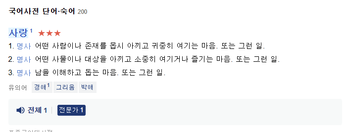 네이버 사전에서는 사랑에 관해 다음과 같이 정의하고 있습니다.