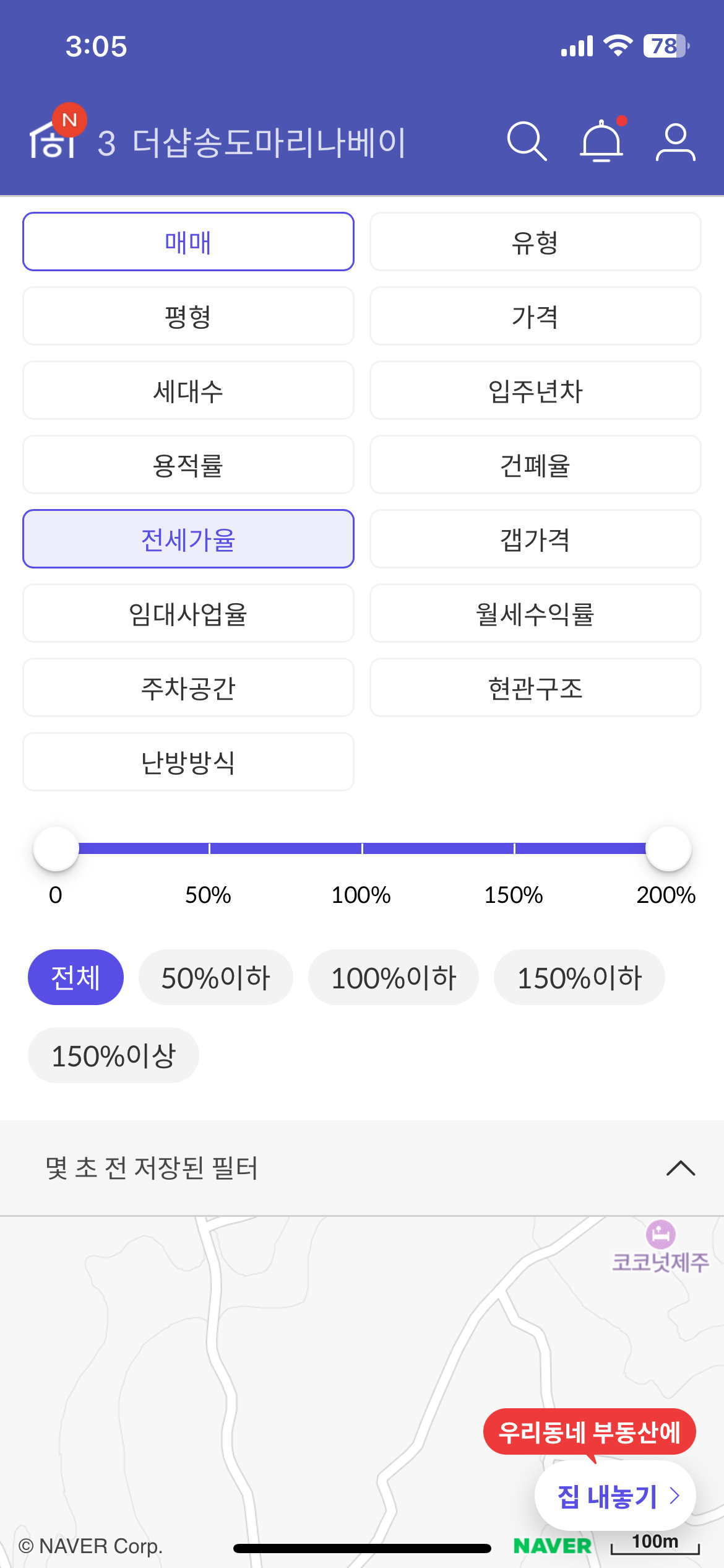 다음과 같이 전세가율을 볼수 있는 메뉴가 있습니다