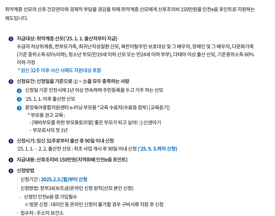 인천시 2025 맘 편한 산후조리비 지원사업