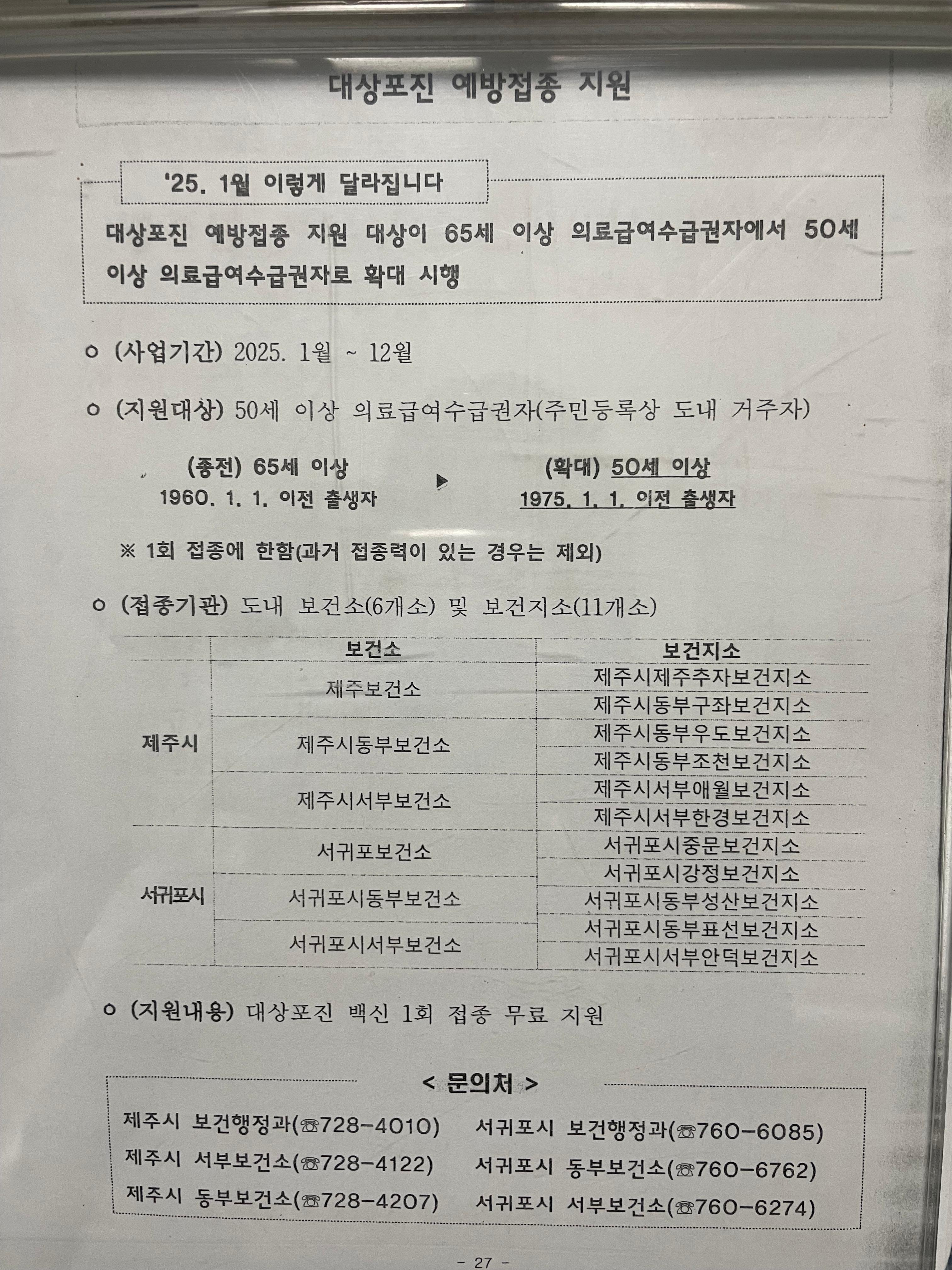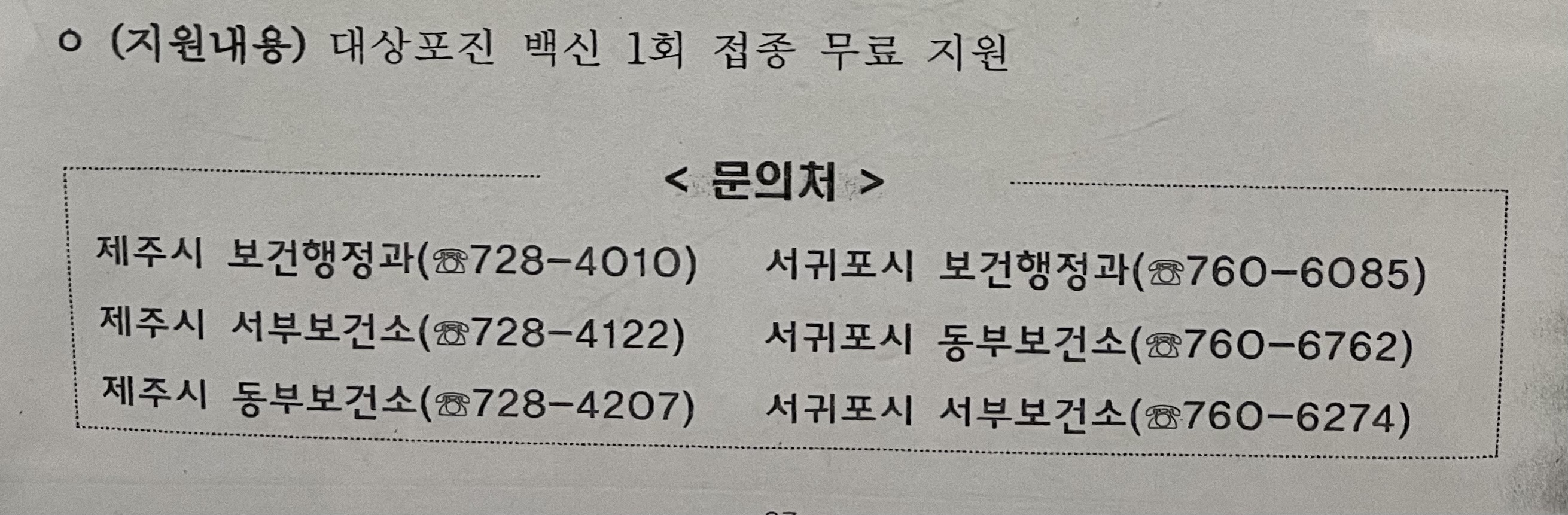 도내 어느 보건소든지 지원이 되니 꼭 방문하셔서 접종을 받으시기 바랍니다.